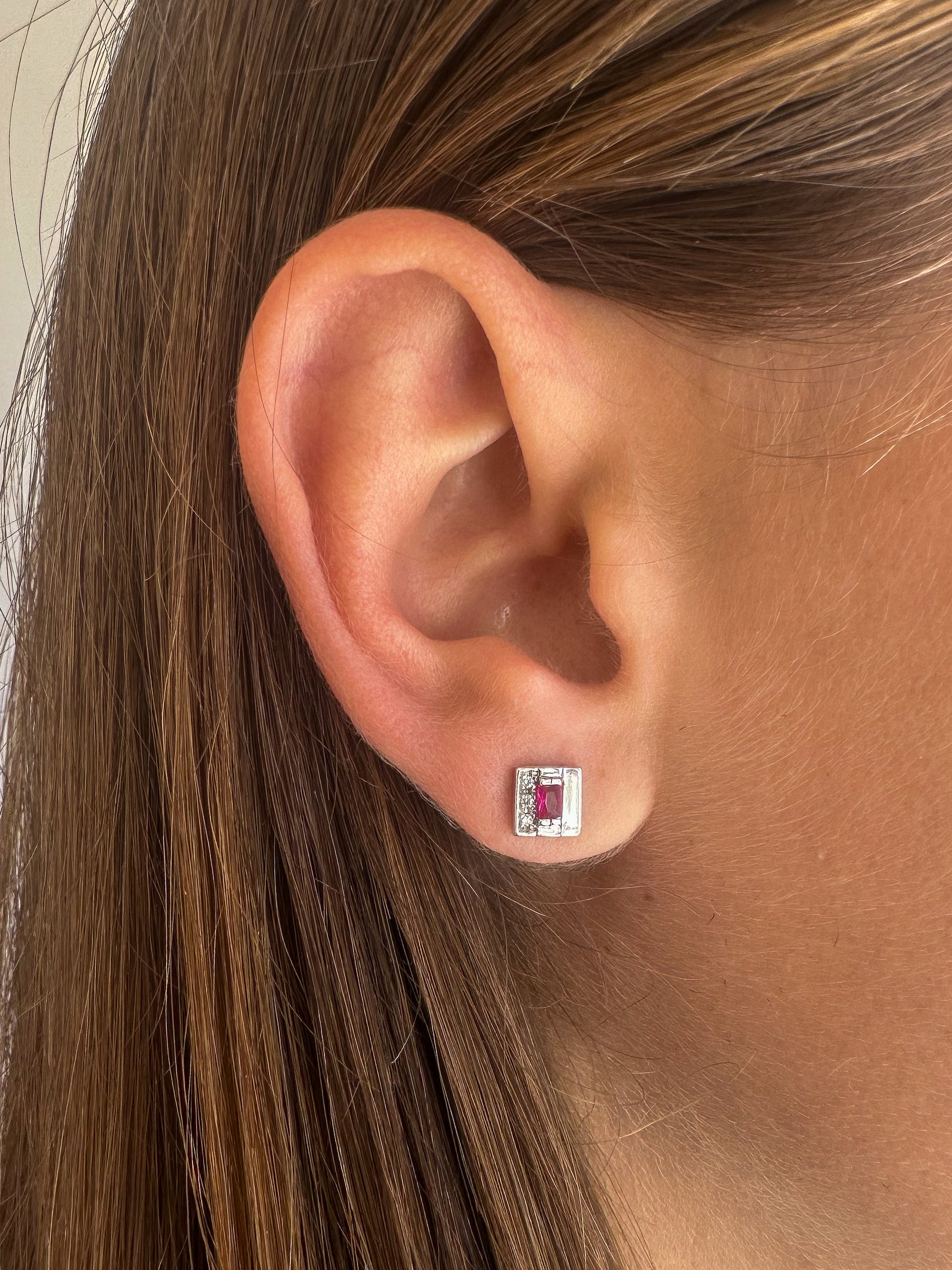 One of a kind estate earrings with bold Art Deco energy - featuring emerald-cut rubies framed in 18ct white gold and brilliant cut diamonds. Hand picked in Italy, hallmarked for Arezzo.