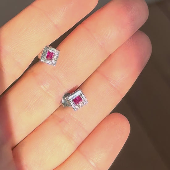 ESTATE 18CT WHITE GOLD, RUBY AND DIAMOND EARRINGS
