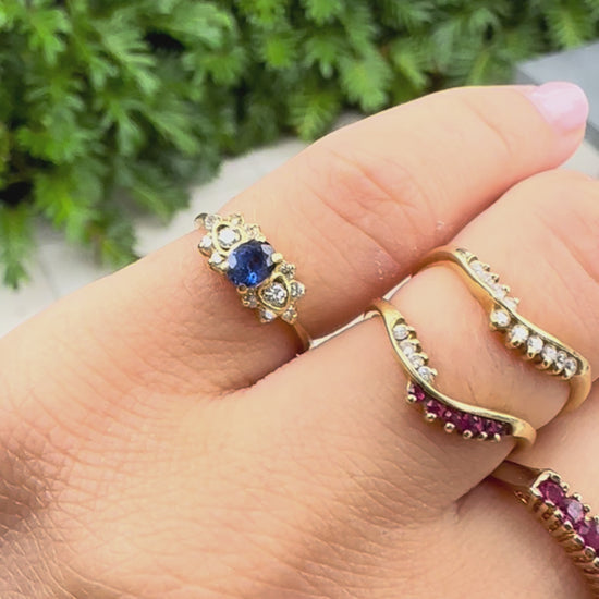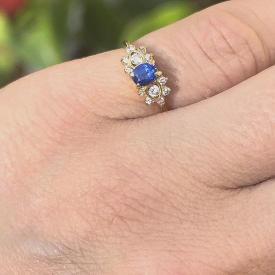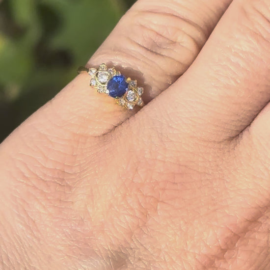 VINTAGE 18CT GOLD SAPPHIRE & DIAMOND RING